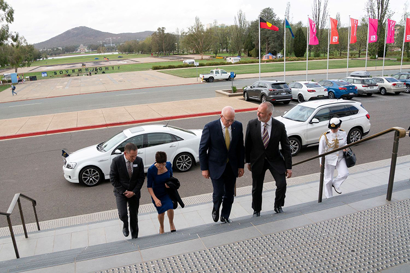 On a balmy Canberra evening, His Excellency General the Honourable David Hurley AC DSC (Rtd), Governor-General of the Commonwealth of Australia, and Her Excellency Mrs Linda Hurley, were greeted at the steps of Old Parliament House by Dr Gordon de Brouwer PSM FIPAA, National President of the Institute of Public Administration Australia (IPAA), and Drew Baker, Chief Executive Officer of IPAA ACT.